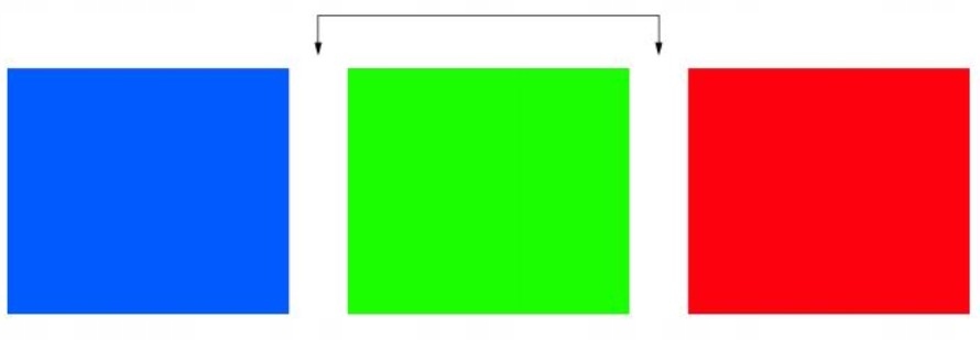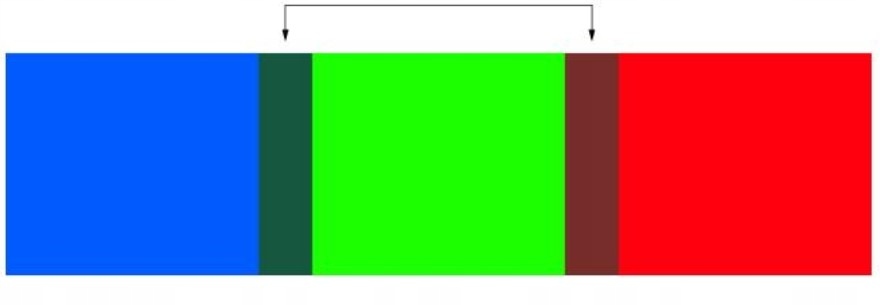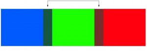 nasze oczy łatwo rozpoznają długość fali niebieskiego, zielonego i czerwonego wzdłuż spektrum światła widzialnego. Jednak tam, gdzie jest niebieskie, zielone i czerwone fale łączą się ze sobą, ludzkie oko ma trudność z wyraźnym widzeniem.