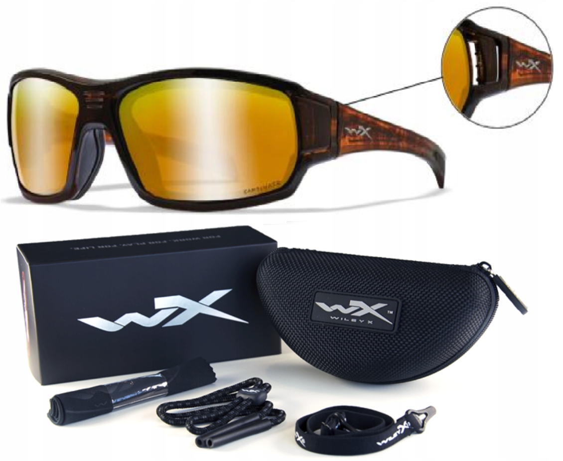 - Okulary Wiley X są zbudowane z 8-śmio warstwowego poliwęglanu carbonu.