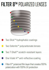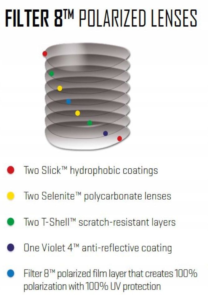 Wszystkie polaryzacyjne soczewki Wiley X są produkowane z ośmiu warstw ochronnych dla optymalnego widzenia. Poza własciwościami antyrefleksyjnymi i odpornymi na zarysowania , Wiley X umieszcza swoją polaryzacyjną warstwę pomiędzy dwie warstwy poliwęglanowe. Ta dodatkowa cecha przedłuża trwałość polaryzacyjnej warstwy i chroni ją przed zniszczeniem oraz zarysowaniem podczas czyszczenia.