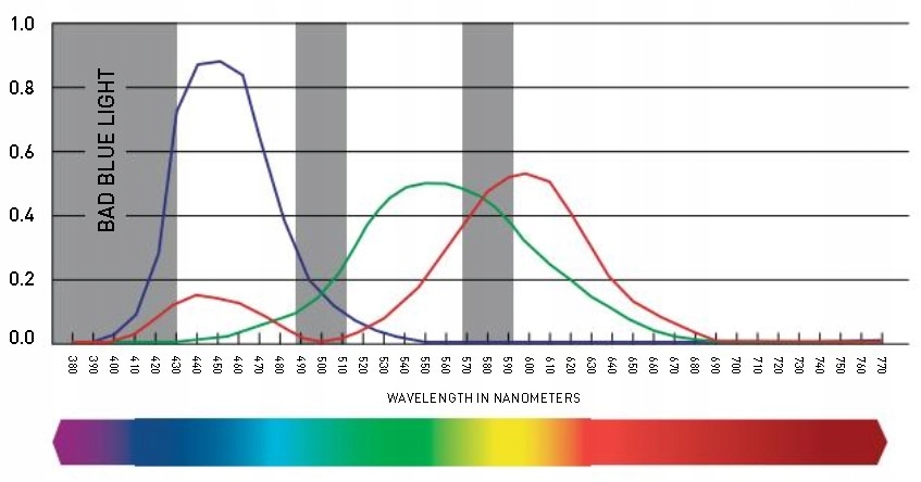 Odfiltrowuje mylące światło, w którym niebieski łączy się z zielonym, a zielony łączy się z czerwonym. Zapewnia to więcej światła tam, gdzie łatwiej jest widzieć twoim oczom, co skutkuje ulepszonymi odcieniami błękitu, zieleni i czerwieni, zapewniając prawdziwe wrażenia kolorystyczne.
