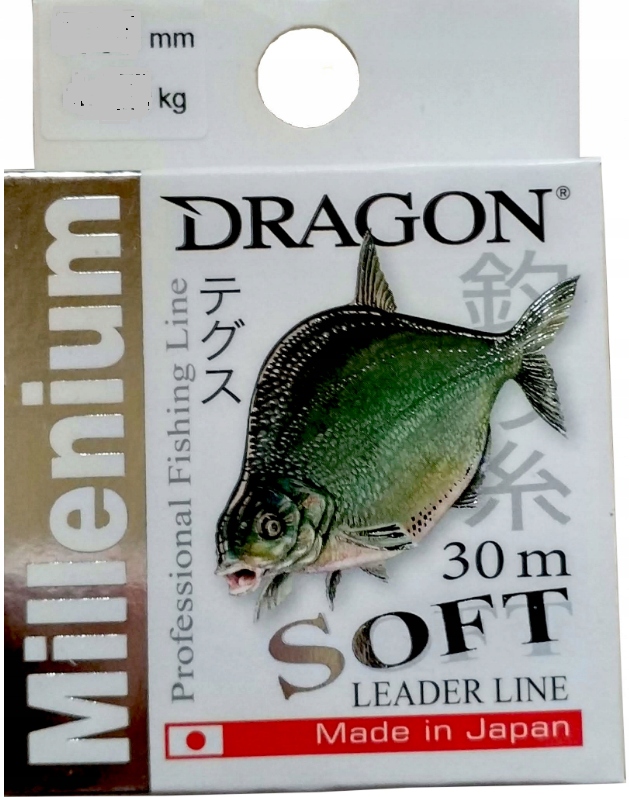 Żyłka przyponowa Dragon Millenium Soft wyprodukowana została ze specjalnie zaprojektowanych, krystalicznych łańcuchów polimerowych o zwiększonej długości i zgodnie ze ściśle określonymi wcześniej parametrami, dzięki czemu otrzymaliśmy precyzyjnie skalibrowaną żyłkę o zwiększonej wytrzymałości i odporności na ścieranie. Dragon Millenium Soft jest żyłką wyjątkowo mocną nawet przy bardzo cienkich średnicach, a jej parametry nie ulegają pogorszeniu z upływem czasu. Dzięki prawie przeźroczystemu, jasnoniebieskiemu zabarwieniu jest zupełnie niewidoczna w wodzie.