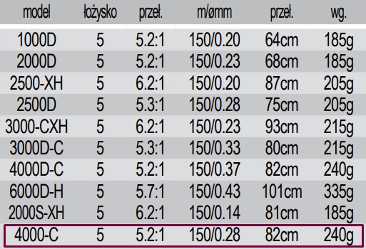 Siła hamowania: 1000/2000: 4kg, 2500/3000: 10kg, 4000/6000: 12kg