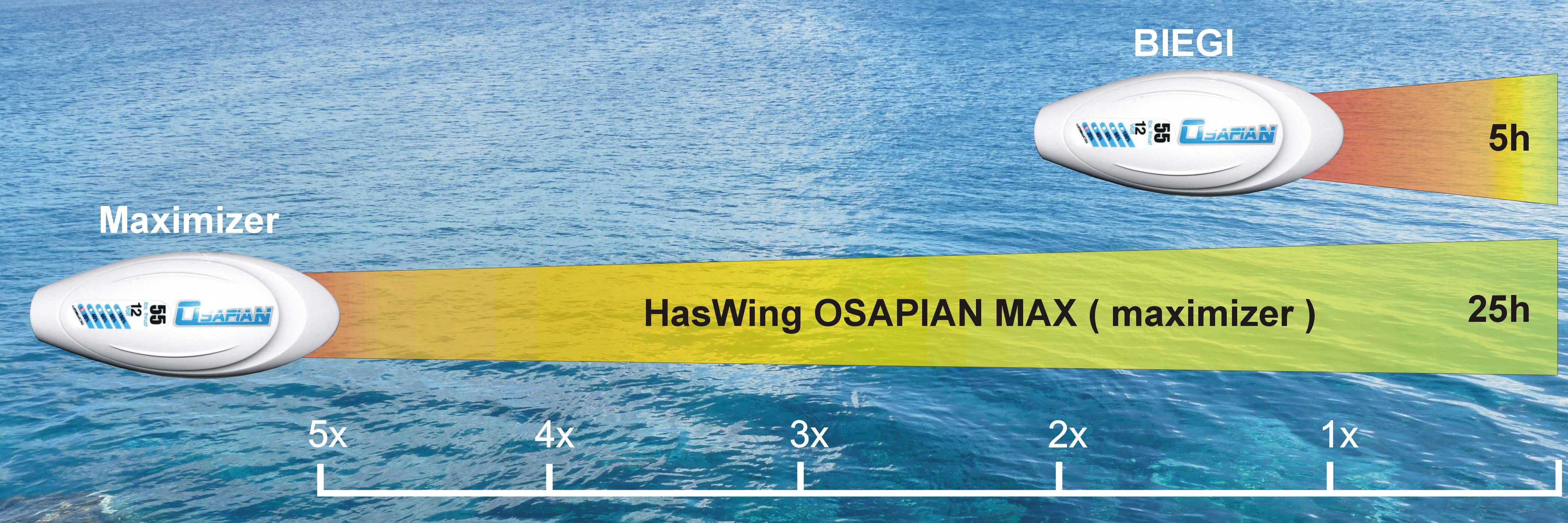 Osapian 55/60 max dzięki dużej mocy i śrubie z 3 łopatkami jest jednym z najszybszych silników zasilanych 12V.
