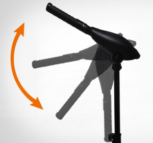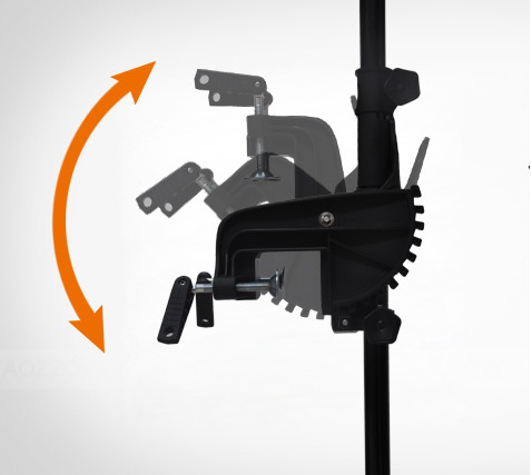 Możliwość regulacji o 20 stopni w górę od pozycji poziomej i regulacji do 90 stopni w dół , w sumie 110 stopni. Przesuwając w dół głowicę o 90 stopni, możemy złożyć silnik do wygodnej pozycji transportowej.