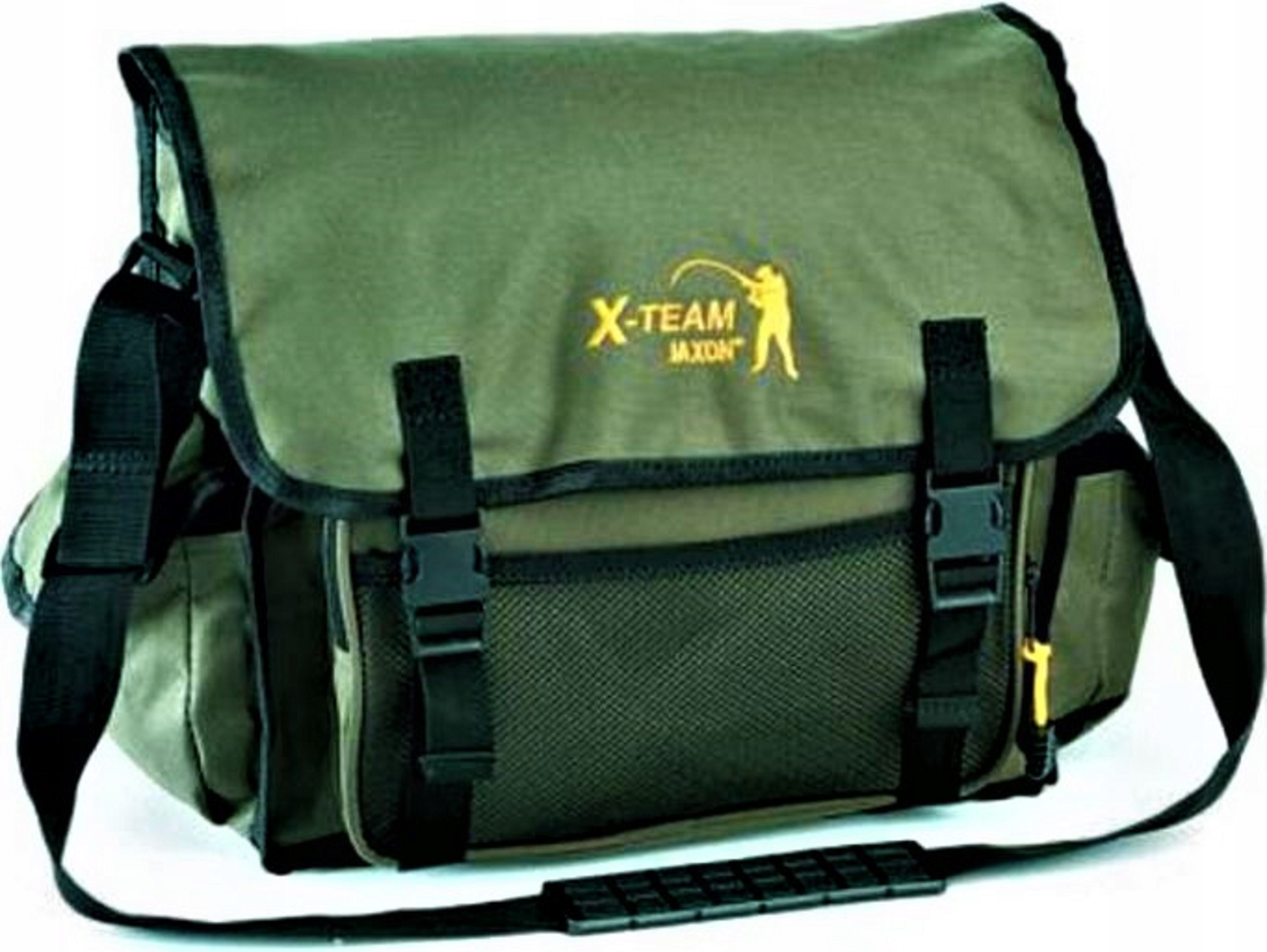 Wygodna torba wędkarska typu chlebak dodatkowymi schowkami w bocznych kieszeniach.